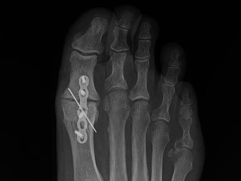 Четкая визуализация границы между костью и металлическим имплантатом без артефакта в виде ореола.