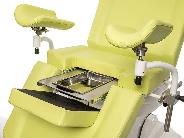 Кресло Euroclinic Suprema G-200 представляет собой передовое решение для гинекологического кабинета, благодаря четырем мощным электрическим приводам. Врач может сохранить до трех индивидуальных конфигураций, что значительно ускоряет работу. Четвертая кнопка возвращает устройство в положение «покой».