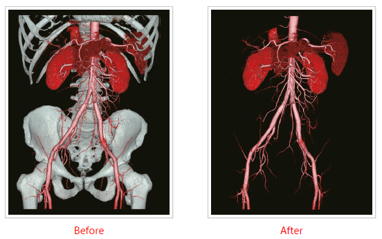 Удаление изображения костных структур и кальцифицированных бляшек для повышения точности КТА. Надежные алгоритмы регистрации могут адаптироваться к широкому диапазону анатомических особенностей и возможных движений.