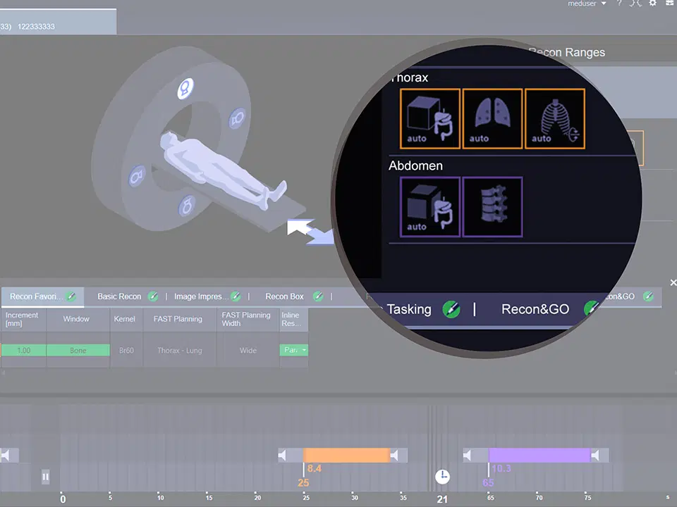 В системе SOMATOM go.Now реализован целостный набор интуитивно понятных решений, которые позволяют рационализировать рабочие процессы не только в процедурной, но и за ее пределами. Технологии GO сокращают количество повторяющихся этапов работы и тем самым позволяют стандартизировать и упростить все процессы в отделении. Таким образом, вы сможете работать более эффективно и сосредоточить внимание на пациентах – это два ключевых фактора для успешного развития отделения.