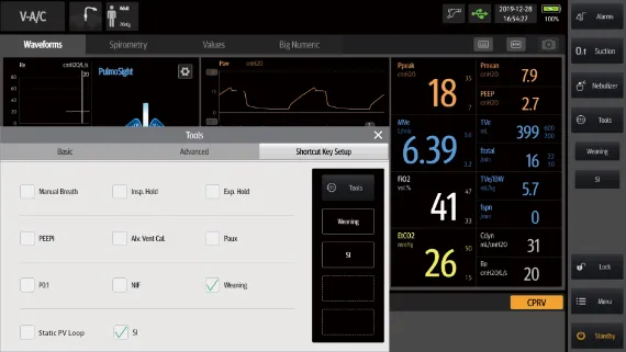 Аппараты ИВЛ SV800 / SV600 предоставляют широчайшие возможности гибкой настройки. Пользователи могут настраивать часто используемые элементы управления параметрами, создавая для них клавиши быстрого доступа в пользовательском интерфейсе. Также клавиши переключения режимов вентиляции могут быть расположены в порядке частоты использования. Эти функции позволяют упростить и ускорить конфигурирование параметров.