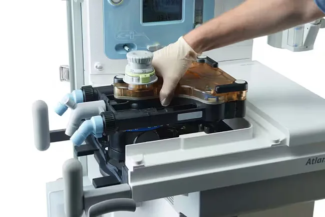 Наркозный аппарат Atlan поставляется с дыхательной системой с подогревом для уменьшения образования конденсата, что позволяет проводить анестезию с низким и минимальным потоком.