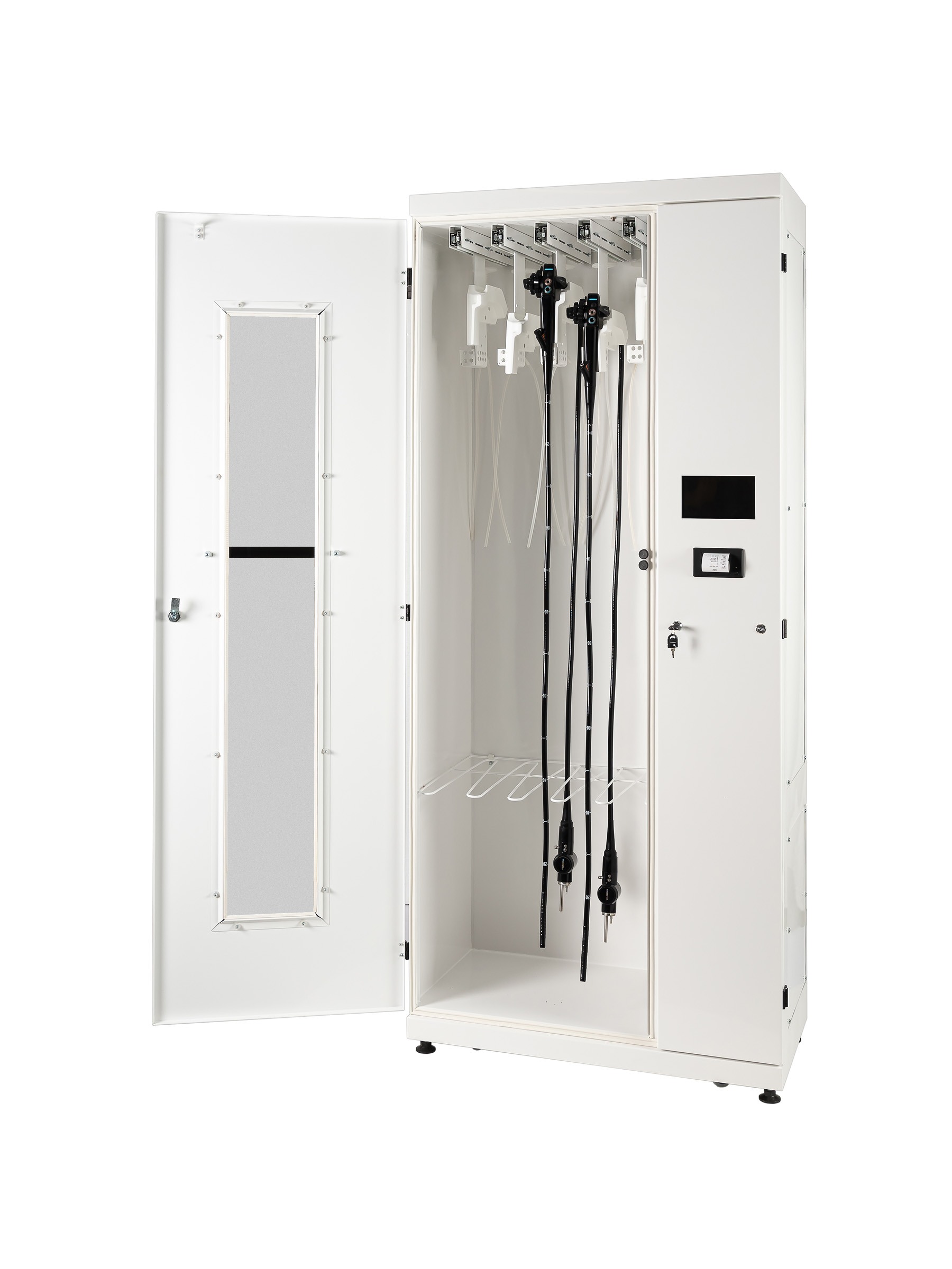 Шкаф предназначен для сушки и асептического хранения гибких волоконно-оптических и видео эндоскопов всех типов, прошедших предварительную обработку, с возможностью подачи сжатого воздуха в каналы эндоскопов и установленной системой подогрева циркулирующего внутри контура циркуляции воздуха. Обеспечивает оптимальные условия хранения за счет стерильной воздушной среды и встроенной системы контроля. Шкаф предназначен для применения в условиях лечебно-профилактических учреждений, научно-исследовательских институтов и других медицинских учреждений.