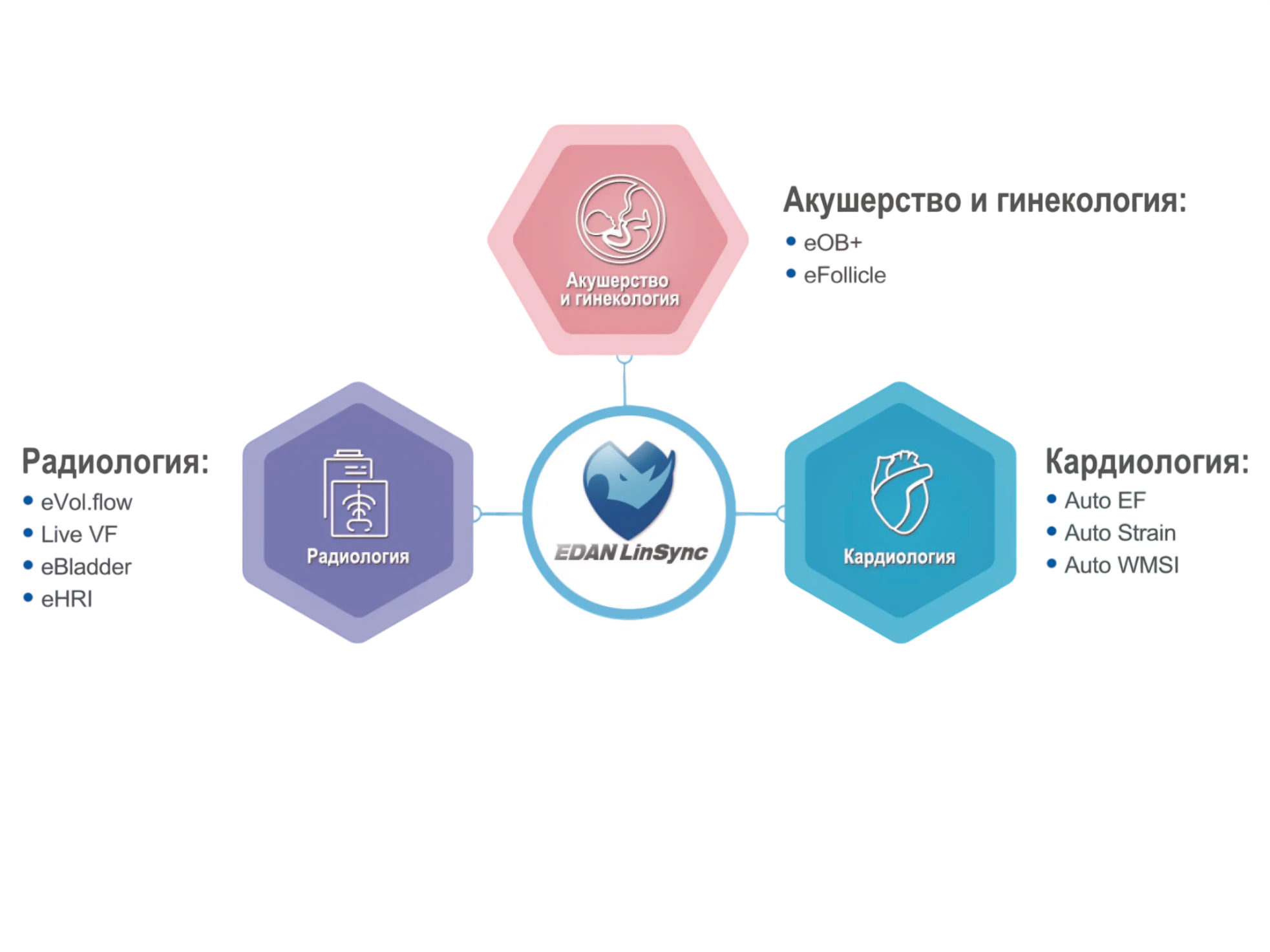 Технология EDAN SynSight использует всю информацию, содержащуюся в наборе возвращающихся к датчику эхо-данных, полученную в каждой большой зоне. Исходная необработанная эхо-информация многократно ретроспективно обрабатывается в процессоре цепочного домена для формирования оптимальных изображений.