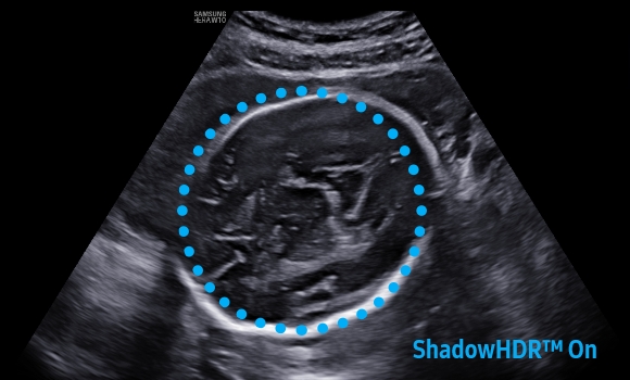 Точечно визуализируйте область тени ShadowHD TM избирательно применяет высокочастотный и низкочастотный спектр ультразвука для определения зон затенения, таких как головка плода или позвоночник, где происходит ослабление.