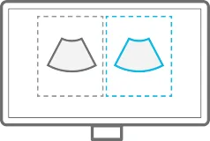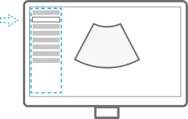 Просмотр изображений на более широком экране  Широкий экран обеспечивает примерно на 27% больше информации при боковом обзоре по сравнению с обычным экраном, что позволяет проводить ультразвуковое исследование с более широким обзором.