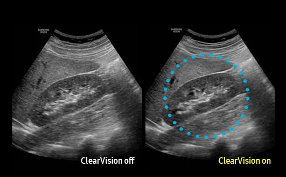 ClearVisionФильтр шумоподавления улучшает выделение контуров и создаёт более чёткие 2D-изображения для оптимальной диагностики. ClearVision обеспечивает оптимизацию для конкретных задач и улучшенное временное разрешение в режиме сканирования в реальном времени.