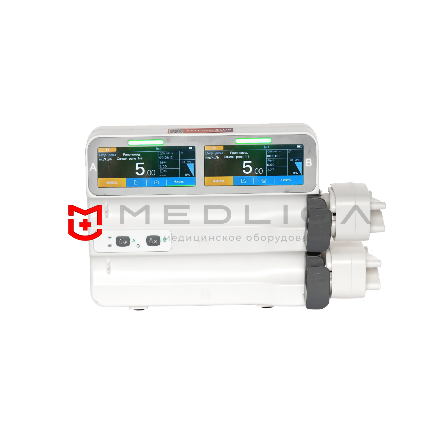 • Двухканальный: позволяет легко осуществлять релейную инфузию